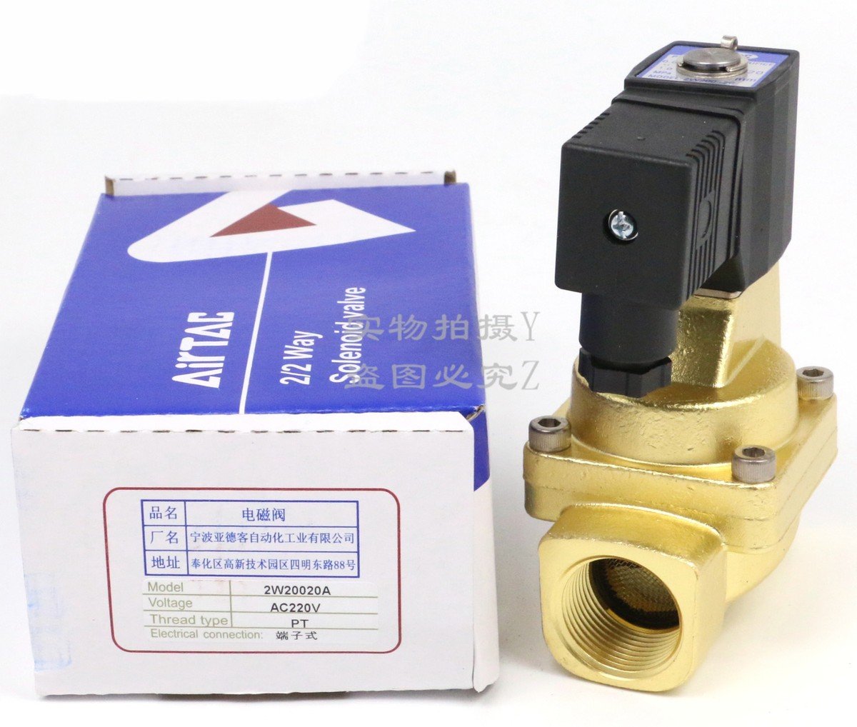 MODEL:- 2W200-20 POWER:- 24VDC SPECIFICATION :- NORMALLY CLOSED SOLENOID VALVE 2W SERIES VALVE 2/2 WAY PORT SIZE:-3/4,BODY MATERIAL:- BRASS TYPE ,WORK PRESSURE :- 0-150BAR BRAND NAME:- AIRTEC , ORIGIN :- MADE IN TAIWAN
