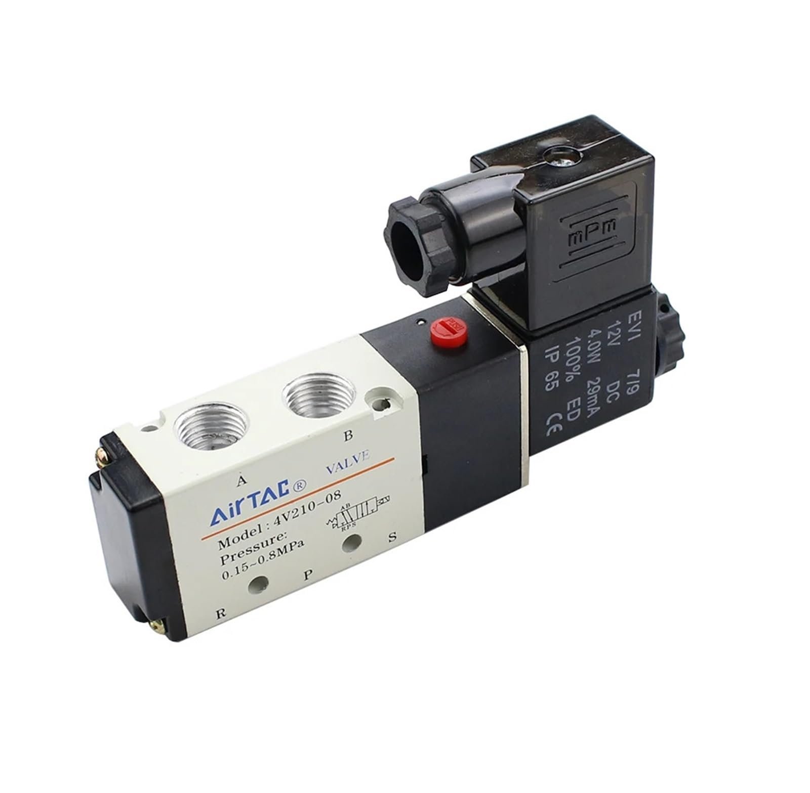 MODEL:- 4V210-08B POWER:-  24VDC SPECIFICATION:- SOLENIOD VALVE 200 SERIES SINGLE SOLENIOD 5/2 WAY PORT SIZE 1/4 24VDC BRAND:- AIRTAC MADE IN:- TAIWAN